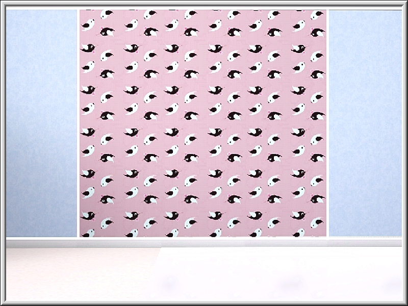 Themed pattern: little black and white bird sweethearts in a random inverted design on pink