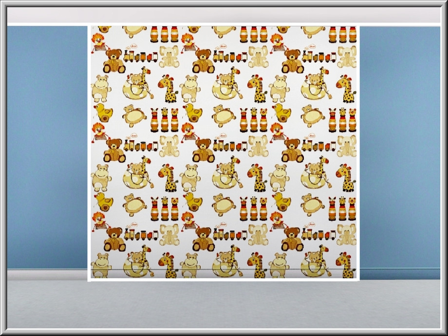 Themed pattern: children's design featuring bears, giraffes, hippos and other animal toys.