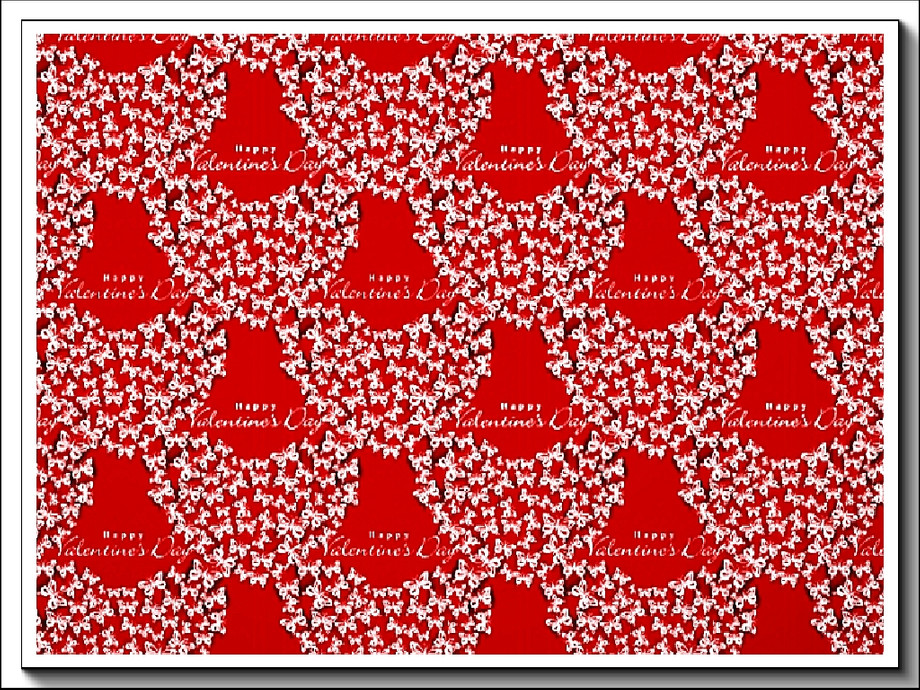 Themed pattern: clustered butterflies in heart shapes and Valentine's text in red and white