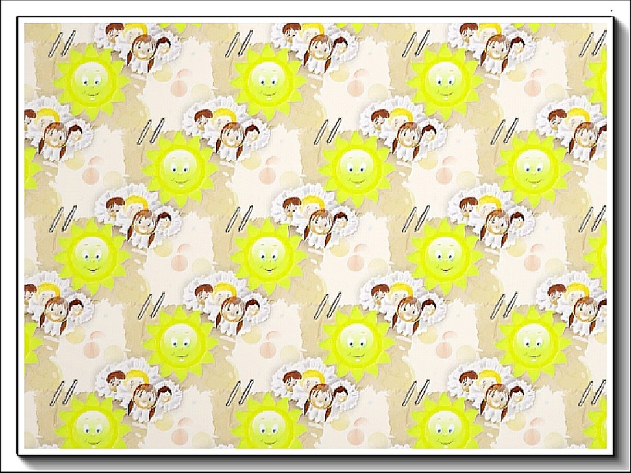 Themed pattern - young children with smiley faces and sun emblem in a patchwork design.