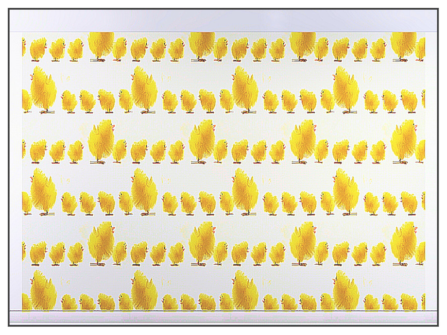 Themed pattern: tiny yellow chicks follow a larger 'cousin' in a game of follow the leader..