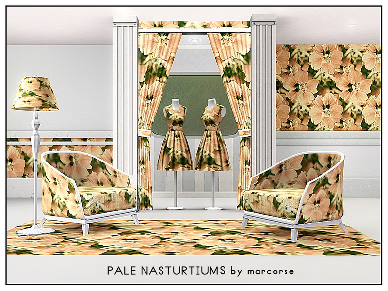Themed pattern: pale pinky/yellow nasturtiums - real flowers for your decor