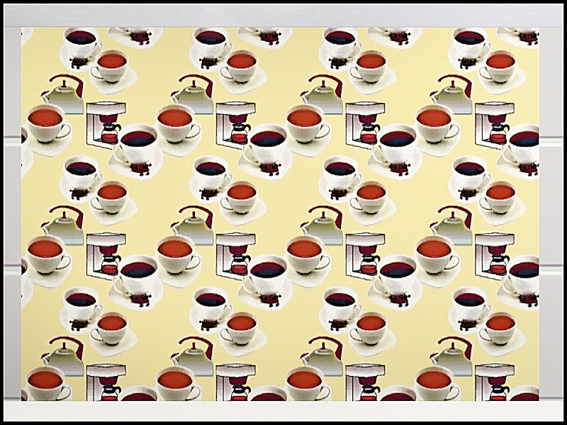 themed pattern: cups of tea and coffee, with their respective accessories . . warmers anytime