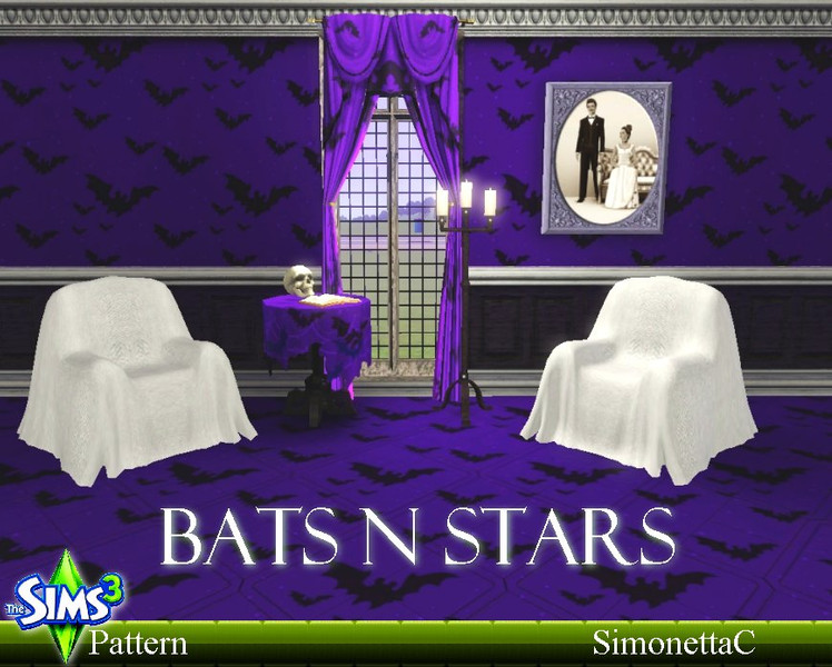 Flying bats set on a starry night sky. Great for your Gothic Sims. Created by SimonettaC.