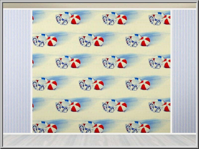 Themed pattern: beach toys, sand and water.