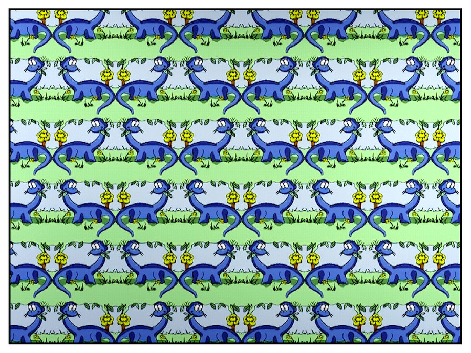 Themed pattern - pair of blue dinosaurs and green scenery.