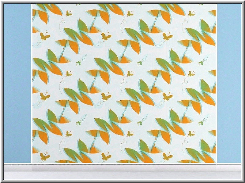 Themed pattern: butterfly flight paths through stylised leaves of green and orange.