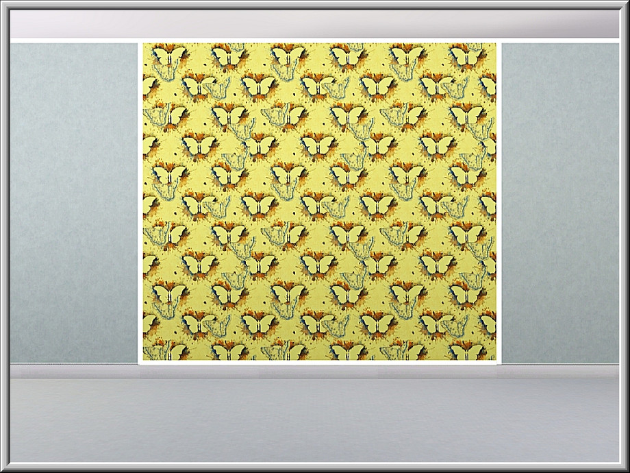 Themed pattern: butterfly shapes and paint spatters on yellow