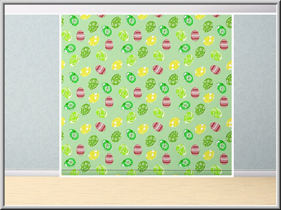 Themed pattern - coloured Easter eggs in a random repeat design on green.