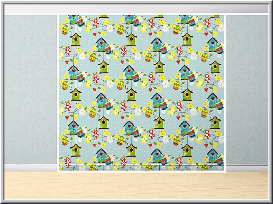Themed pattern - singing birds, nest boxes and Easter eggs on strings . . .Happy Easter.
