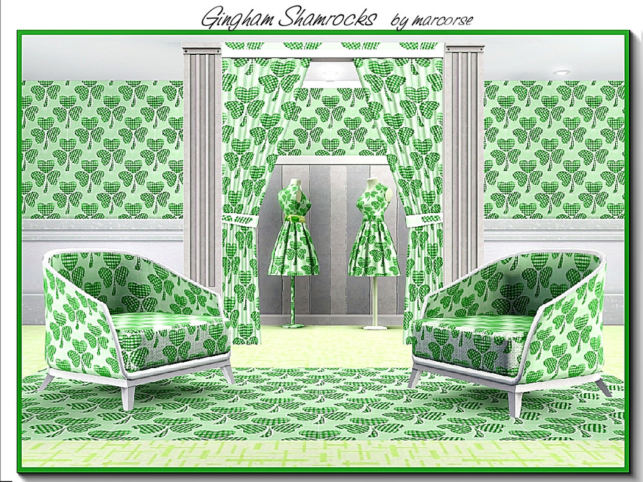 Themed pattern: crisp green gingham shamrocks for St. Pat's Day 2016