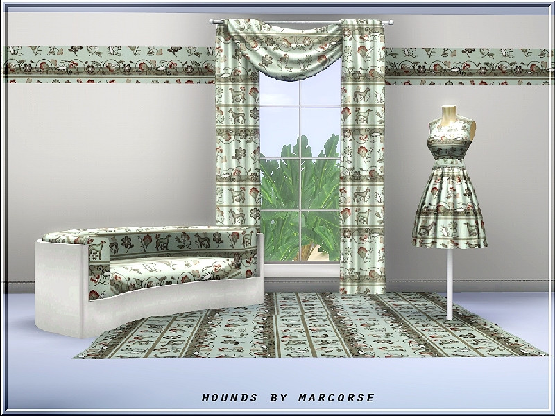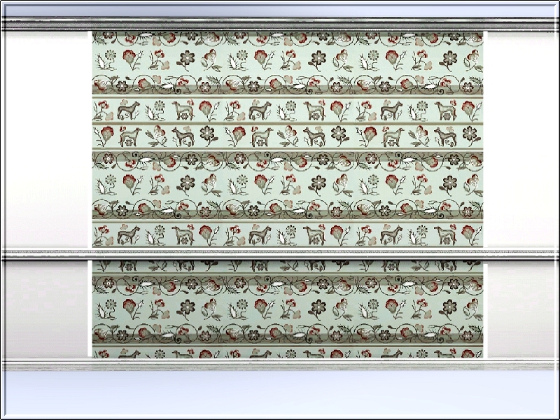 A vintage, decorative panel featuring hunting dogs and floral elements. 3 palettes recolour