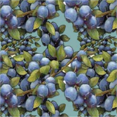 Big, fat bunches of sweet and juicy blueberries in an allover, repeat pattern.