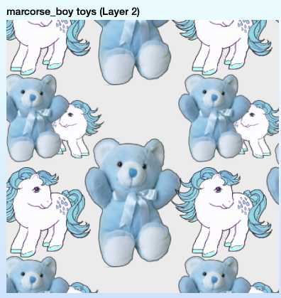 A gentle, child-friendly pattern featuring Blue Teddy and his friend Blue Pony.