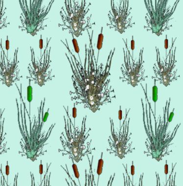 Swamp cattail features in this allover repeat pattern.