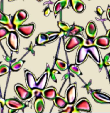 A novelty repeat pattern comprised of enamelled floral motifs