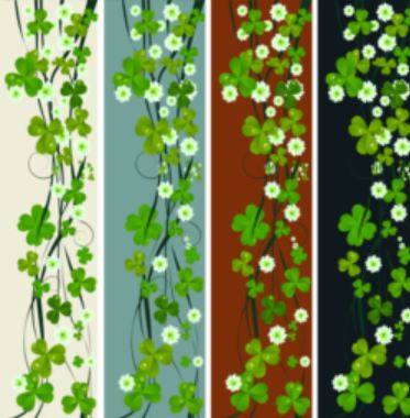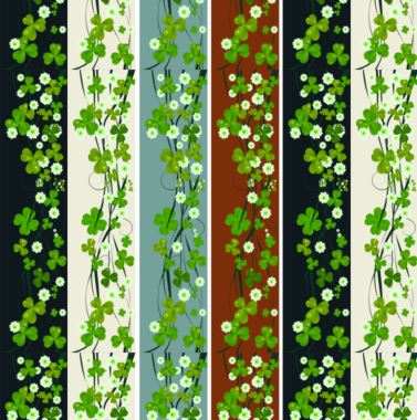 Vertical strands of clover and bellis perennis [English daisy] overlaid on four contrasting coloured bands make a striking pattern.