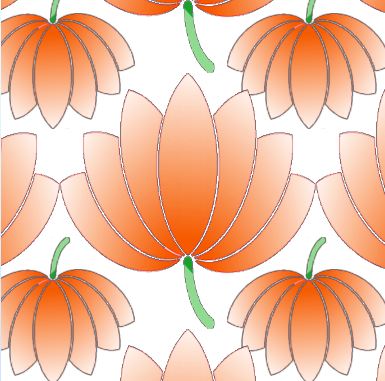 A large, orange lotus blossom with a green stem is the focus of this striking repeat pattern.