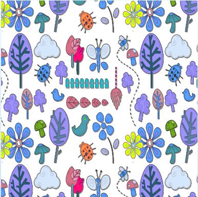 A fun, novelty pattern showing stylised versions of some of the things Mother Nature provides in the great outdoors.
