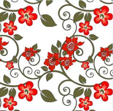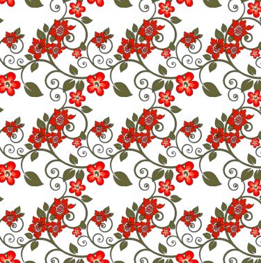 A crisp bright floral pattern with clean lines, in shades of red and white.
