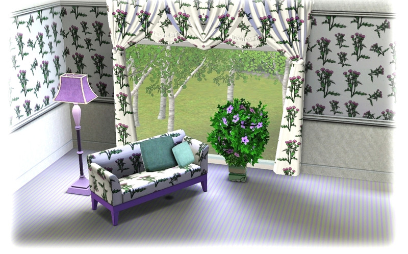 Credits: Cushion:aloleng. Curtain:Mutske. Pot plant:matomibotaki. Tall plant:Pralinesims. Loveseat:lulu.
