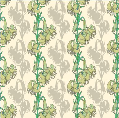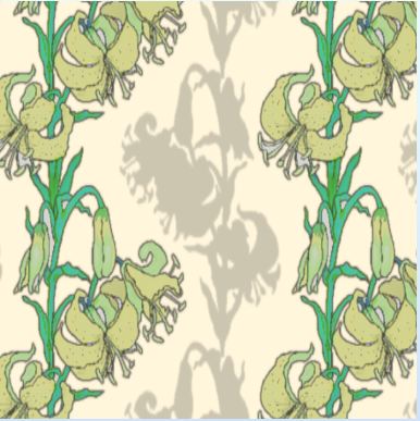 Stalks of yellow tigers lilies throw a shadow across this vertical pattern.