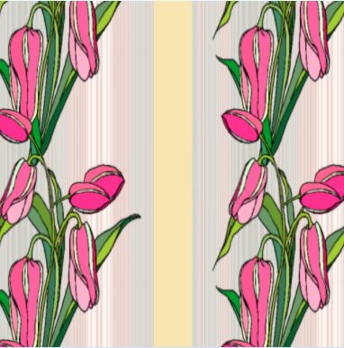 Beautiful tulips in shades of pink, climb up this vertical pattern, with it's soft striped background and contrasting splash of yellow.