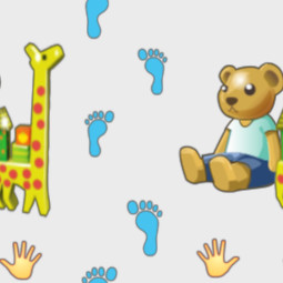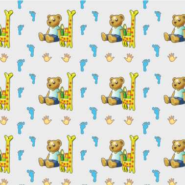 A novelty pattern suitable for a child's room - teddy and his friend giraffe are walking tall.