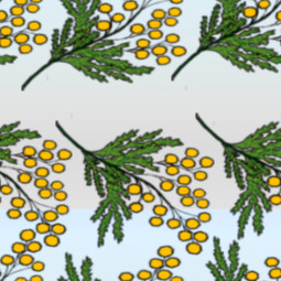 Here is a horizontal pattern, utilising the dainty yellow 'puffballs' and ferny foliage of Australia's floral emblem . . what we call Wattle . . you probably know it better as Acacia.