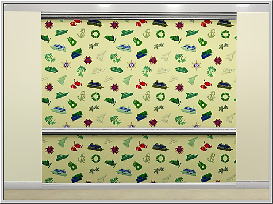 Themed pattern: nautical images - ships, anchors, lifebuoy, fish.
