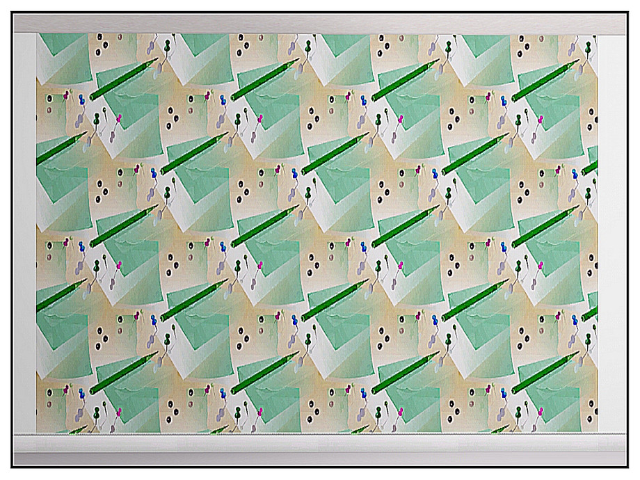 Themed pattern - pencils, paper and push pins for office decor.