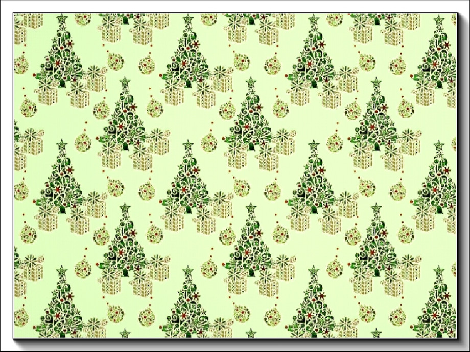 Themed pattern: traditinal Christmas tree, gifts and ornaments in green