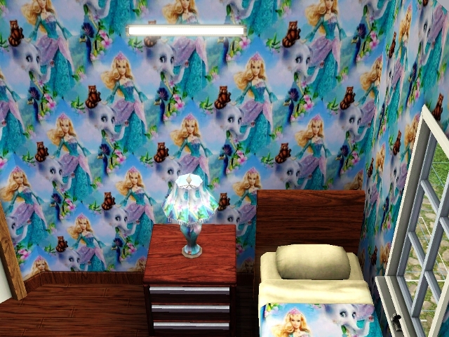 I LOVED Barbie growing up. So I made a Barbie pattern for your little Sims girls! It features Barbie dressed as a princess and two of her animal friends! It makes a really cute bedroom for little girls!