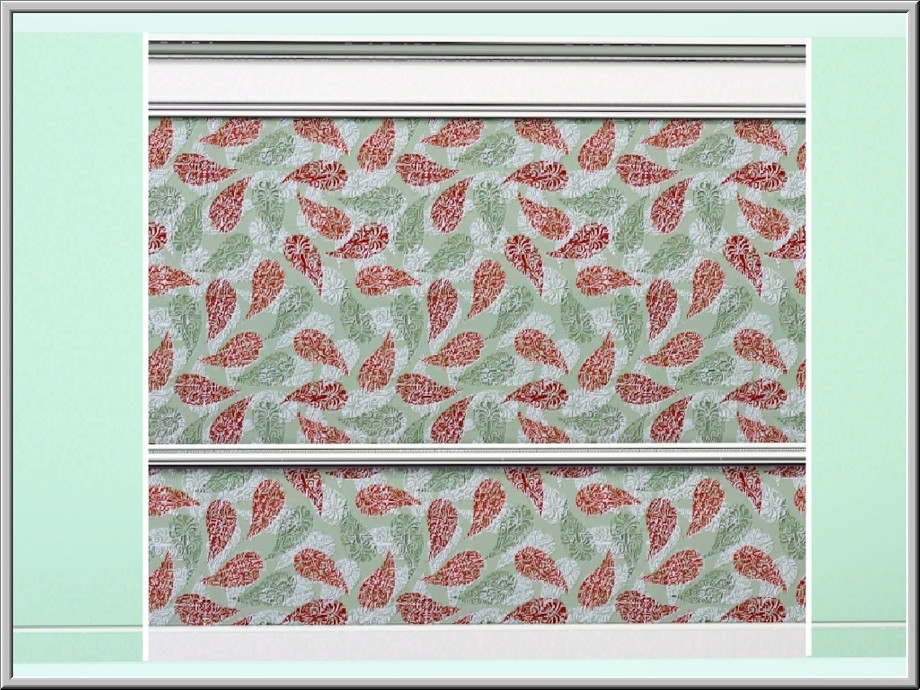 Printed leaf shapes in red, green and white on a paler green. 3 palettes recolour