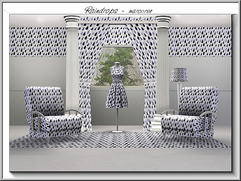 Themed pattern: raindrops in two shades of blue.