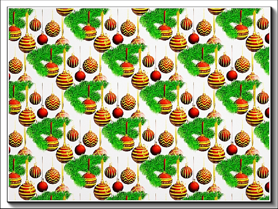 Themed pattern - red Christmas ornaments and spruce branch.