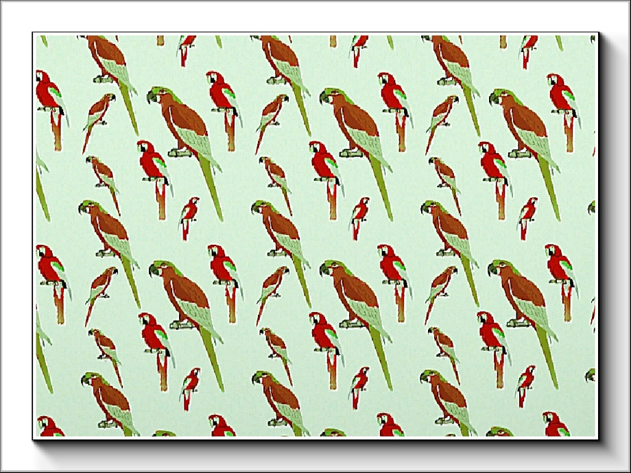 Themed pattern: lots of red and green parrots