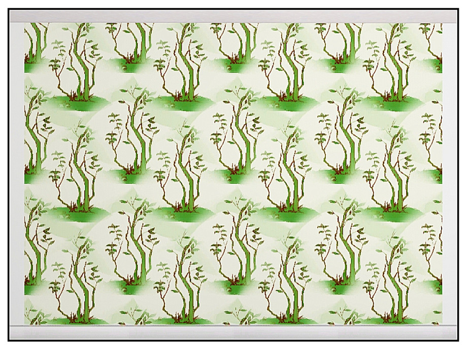 themed pattern: fire damaged trees coming alive with new growth