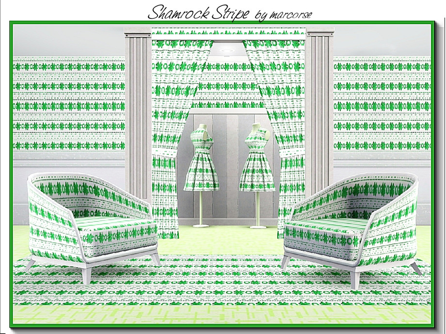 Themed pattern: stylised 4leaf clovers and horizontal embroidery in a striped design