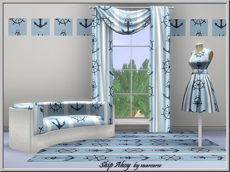 Nautical elements in a vertically striped Themed pattern.