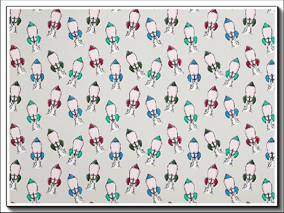 Themed pattern - red and blue rockets head into space.