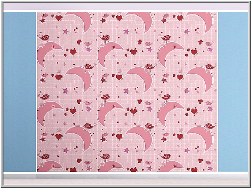 Themed pattern: little birds, crescent moons, hearts and stars for girls