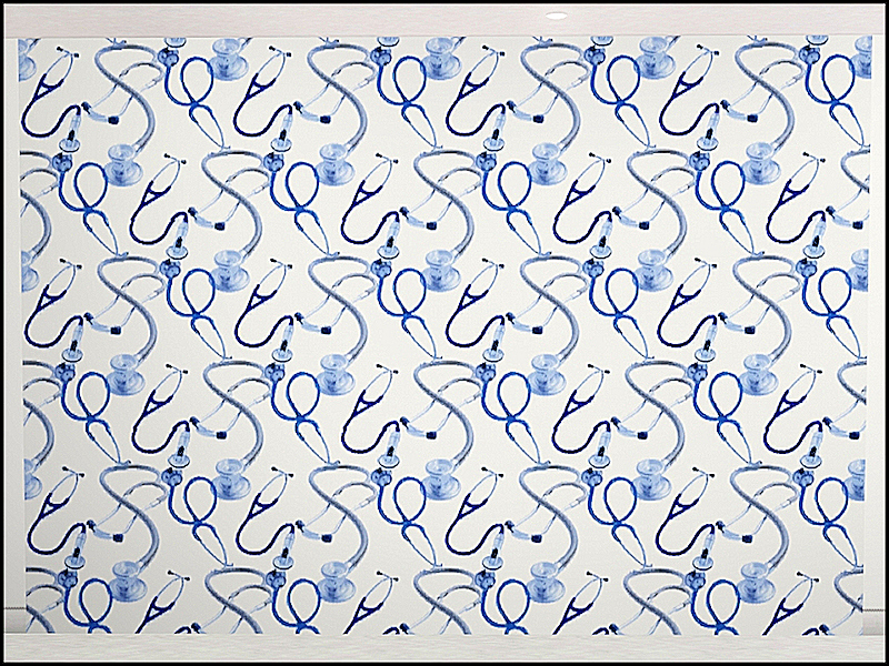 themed pattern: medical equipment in an allover design in blue on white