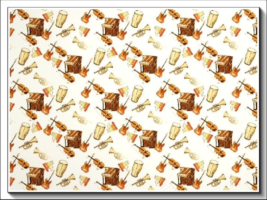 Strike up the Band! Themed pattern: musical instruments in brown shades on cream