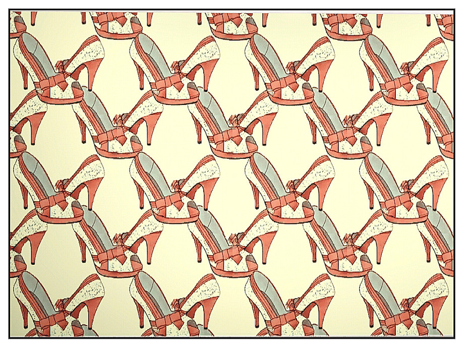 Themed pattern: high heel, red and white Summer shoe with bow, peep toe and modest platform sole
