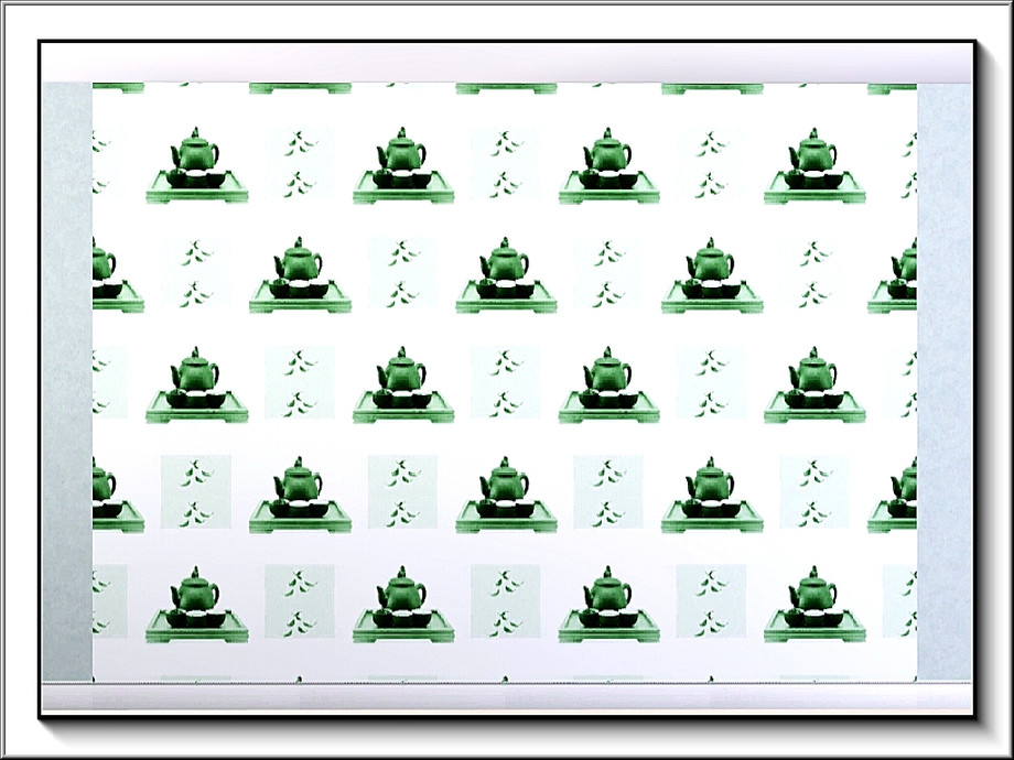 Themed pattern: Tray with pot and servers and floating tea-leaves for tea ceremony