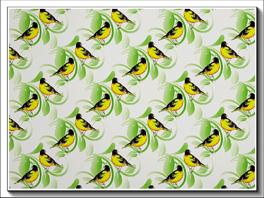 Themed pattern - yellow breasted songbird and green leaves