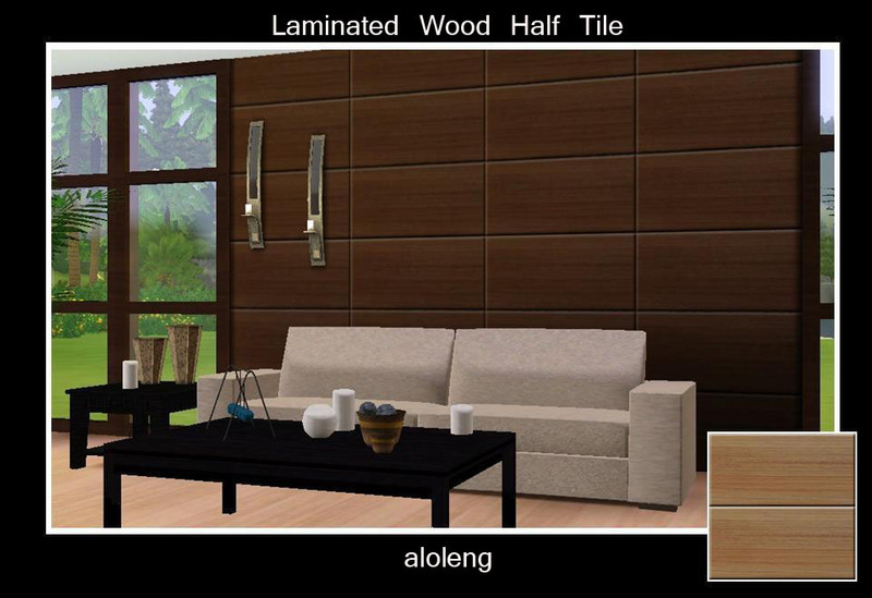 Laminated Wood Half Tile by aloleng at TSR. This wood has the embossed feel of the wood. It's like it was attached to the wall separately. Enjoy.