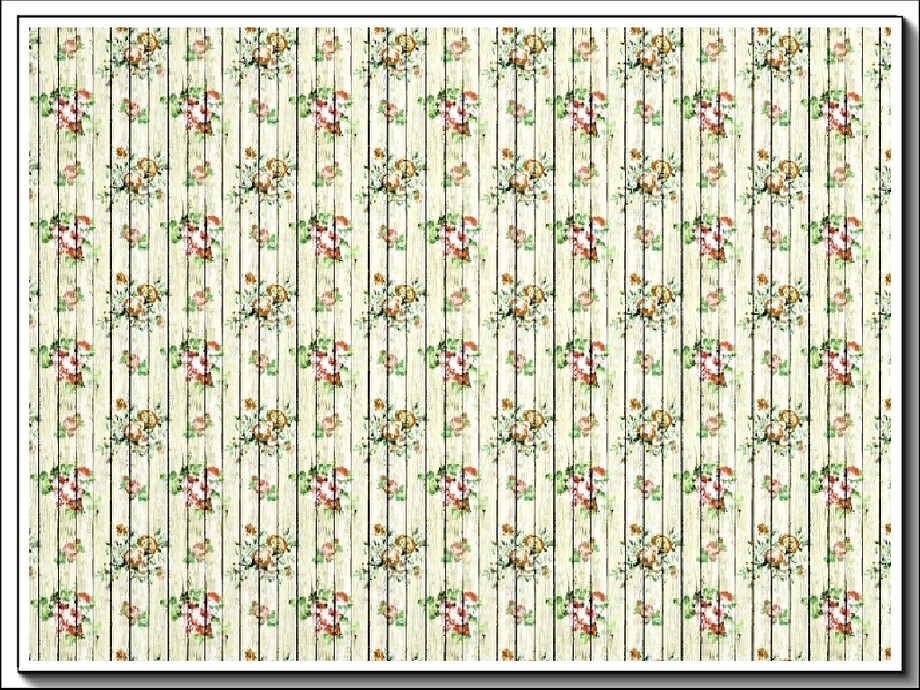 Wood pattern _ painted timber with a floral spray design in pink and green
