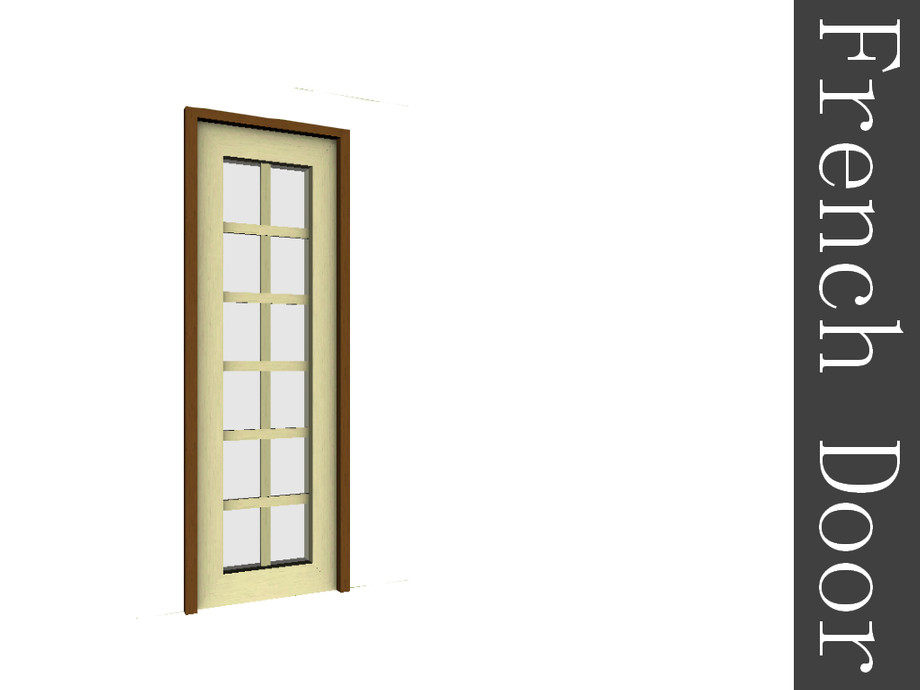 This door is one full tile wide and costs 200 Simoleons. It has four recolorable channels and 5 variations.